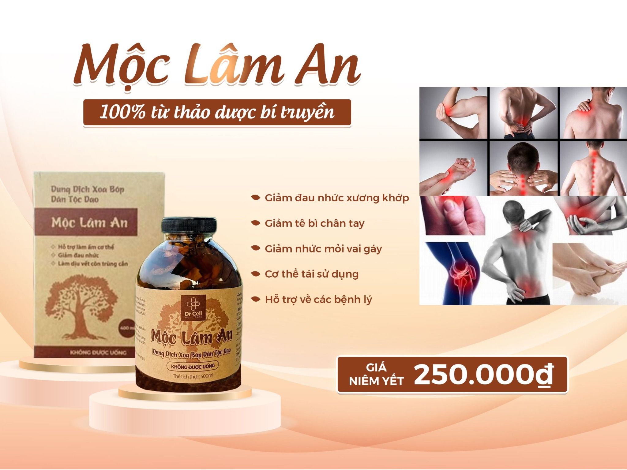 Mộc Lâm An là công thức bí truyền của dòng họ Lăng, dân tộc Dao tại Yên Sơn – Ba Vì – Hà Nội, kết hợp nhiều loại thảo dược quý theo tỷ lệ vàng ngâm cùng rượu gạo nấu không cồn, tạo nên sản phẩm dung dịch thảo mộc nguyên chất, dễ dàng thẩm thấu, mang lại hiệu quả nhanh chóng và linh hoạt trong sử dụng.